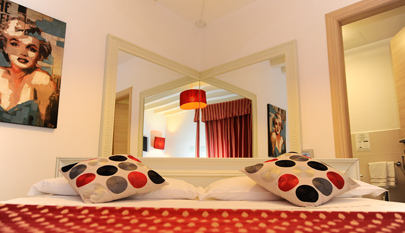 Dalla tipologia "Exclusive" le camere evolvono ulteriormente verso un livello di raffinatezza decisamente alto. La vasca idromassaggio doppia, posta accanto alla testata del letto, è un elemento che può senz'altro regalare momenti di piacevole relax.